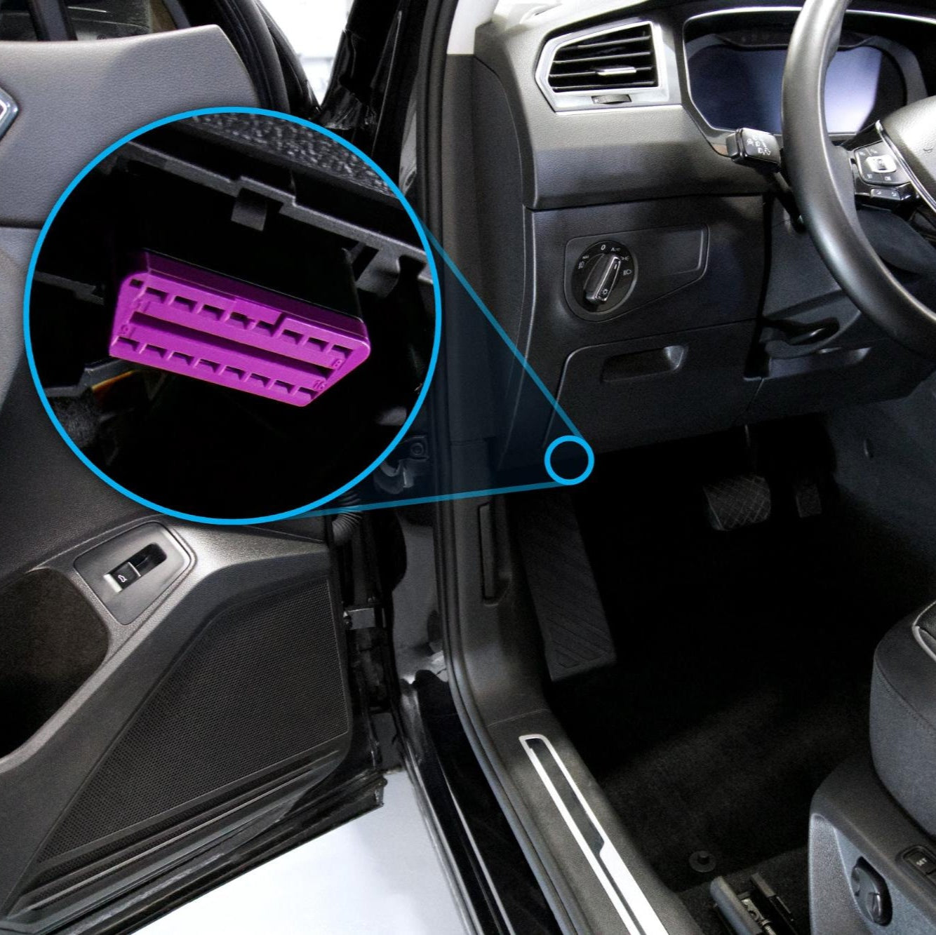 1.Plug the chip into the OBD2 port (under the dashboard on the driver's side).